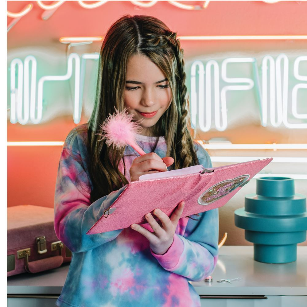 LOCKABLE JOURNAL: A glimmering gem lock & removable key ensures young writers’ ideas stay safe & sound. This glitter journal is the just the right size to slip into backpacks, purses & totes so girls and teens can write wherever they go, or tuck it away in a secret spot at home.