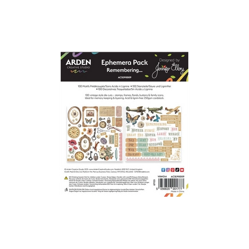 Step into a world of vintage beauty and heartfelt storytelling with the Remembering… Collection, designed by Jennifer Ellory for Arden Creative Studio. Inspired by timeless elegance and the warmth of treasured memories, this collection has been thoughtfully created for heritage scrapbooking, cardmaking, journaling, and memory keeping. This set includes stamps, frames, florals, buttons and family icons. Ideal for memory keeping & layering