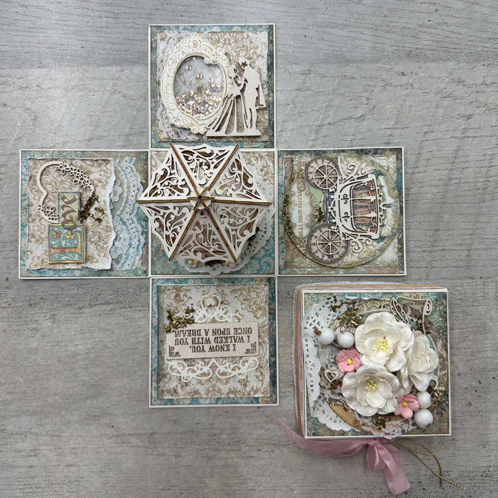 The design for this exploding box is mostly from Stamperia’s designer Darota Kotowicz with a few adaptions.