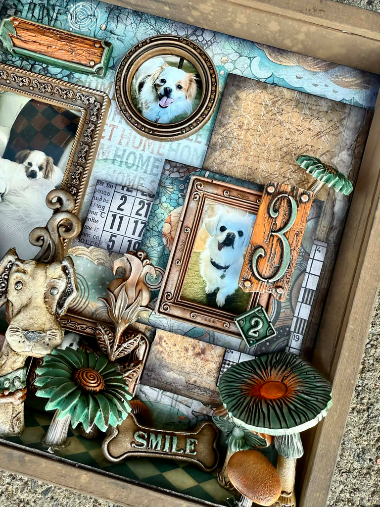 In this 12x12 MDF shadow box class, you’ll create a deeply personal tribute to your beloved pet — whether feline or canine — using Antonis’s latest Furry Friends collection.