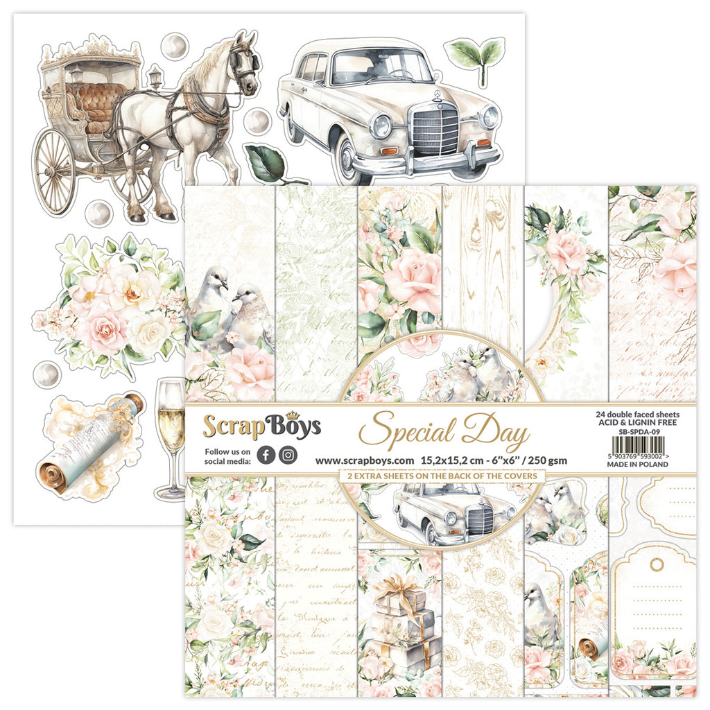 SPECIAL DAY: Papers dedicated to a special occasion like a wedding, but the sheets and cards have been designed so that the collection can also be used for other special days in your lives. The collection is full of well-chosen and matched graphics to make working with pure pleasure. In it you will find charming couples, wedding motifs, lots of flowers and leaves.