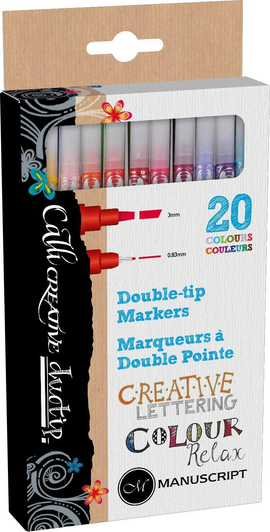 Fabulous fun, colourful pens with both chisel tip and fineliner for creative lettering, writing & colouring.